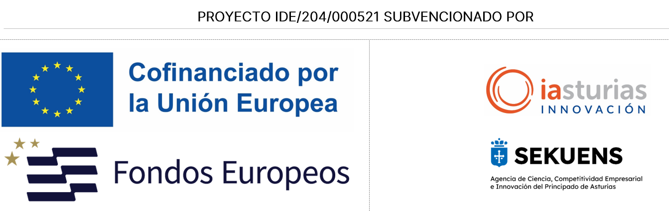 Proyecto cofinanciado por el Gobierno del Principado de Asturias a través de la AGENCIA SEKUENS, el Plan de Ciencia Tecnología e Innovación (PCTI) 2024-2027 y la Unión Europea a través del Fondo Europeo de Desarrollo Regional (FEDER).